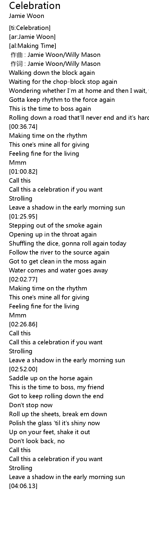 | [01:04.22] | Call this a celebration if you want |