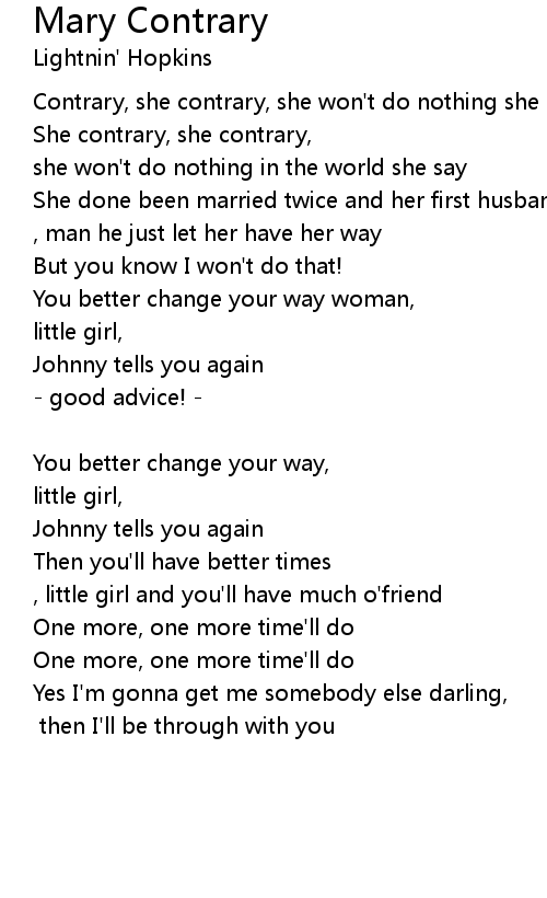 She contrary, she contrary, |
