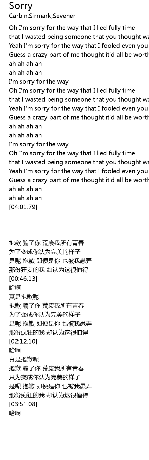 | [01:40.07] | Oh I'm sorry for the way that I lied fully time |