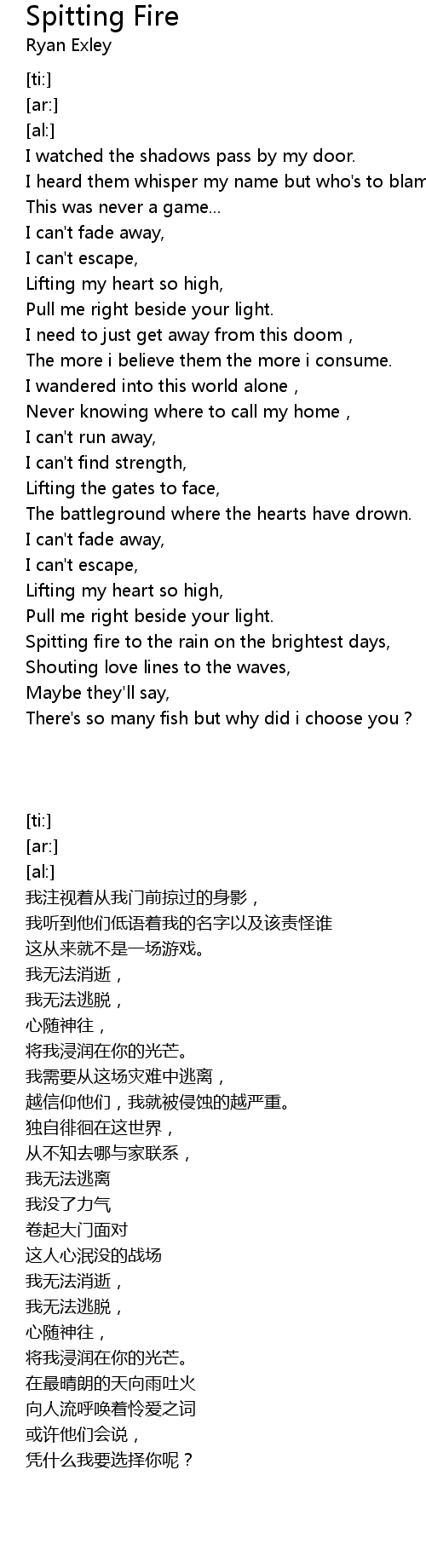 | [05:40.01] | Spitting fire to the rain on the brightest days, |