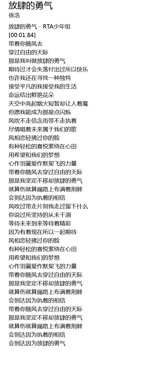 | [00:00.00] | 放肆的勇气 - RTA少年组 |