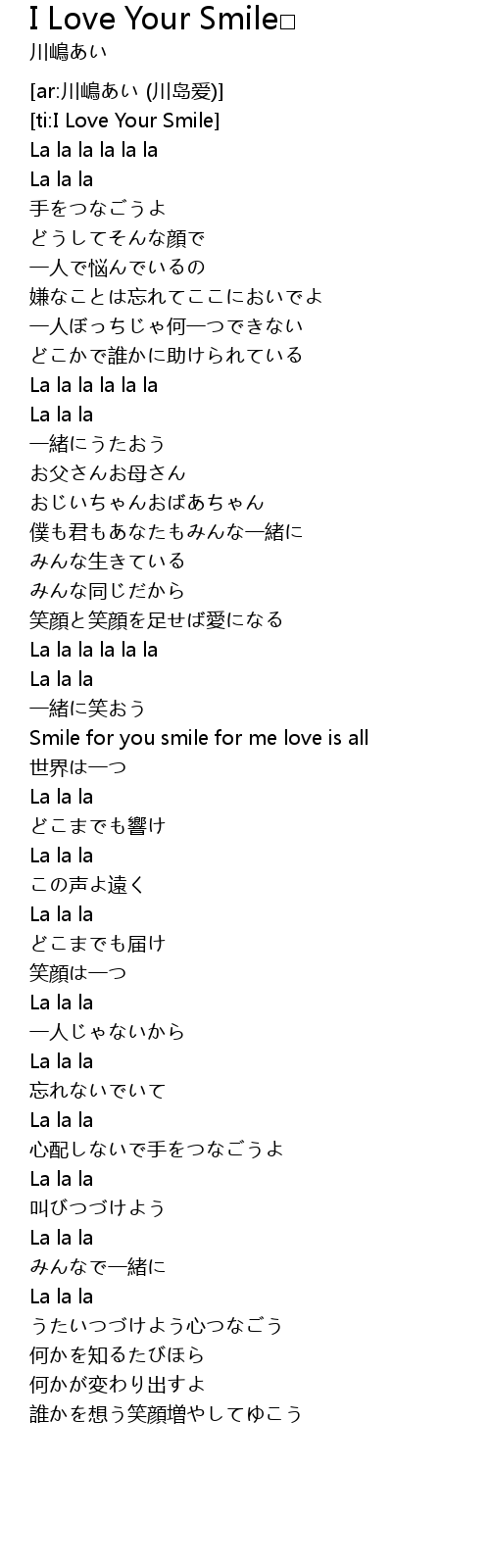 | [02:04.35] | 笑顔と笑顔を足せば愛になる |