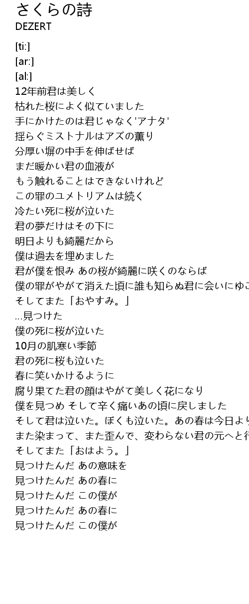 | [02:41.85] | 君の死に桜も泣いた |