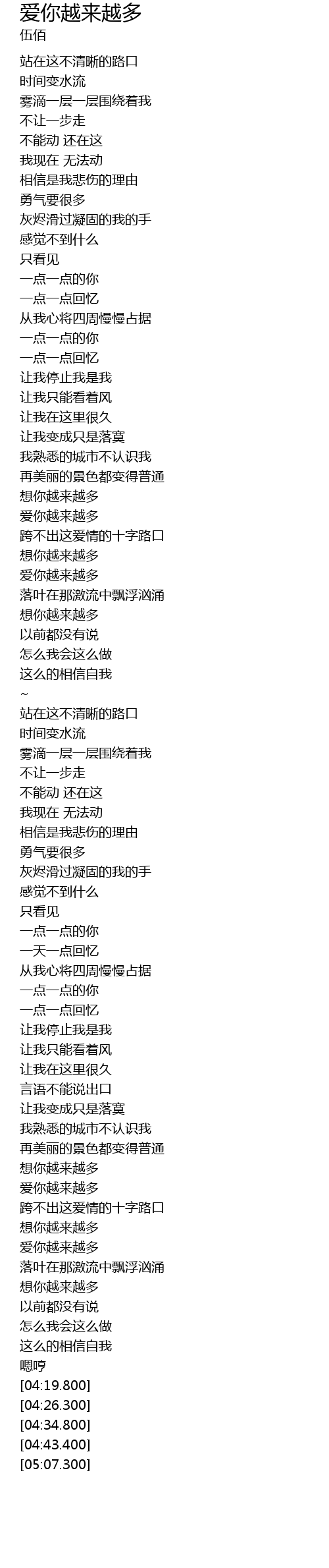 | [01:45.300] | ài nǐ yuè lái yuè duō |