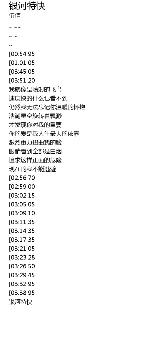 | [00:18.60][00:54.95][01:19.30] | 银河只有一条线 |