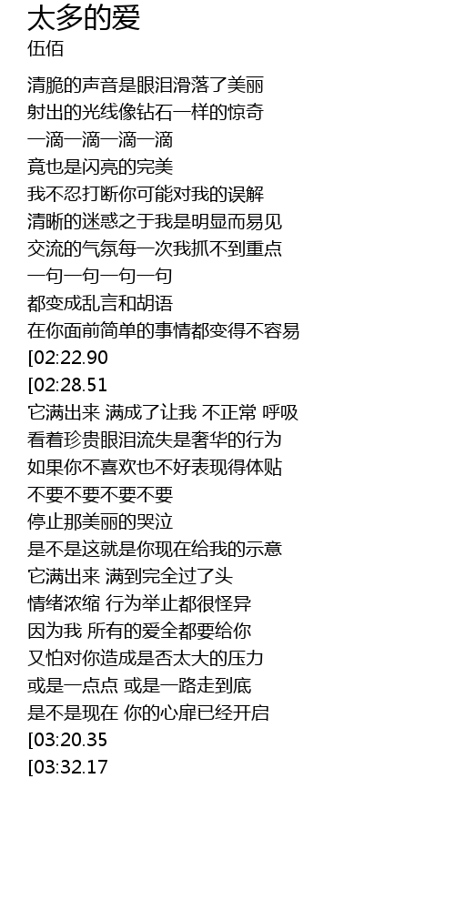 | [03:10.81][03:20.35] | 太多的爱... 太多的爱... |