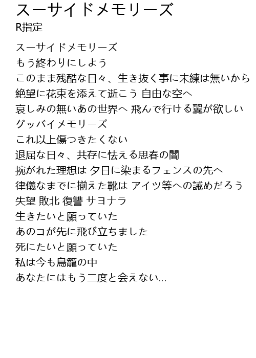 | [00:00.310] | スーサイドメモリーズ |
