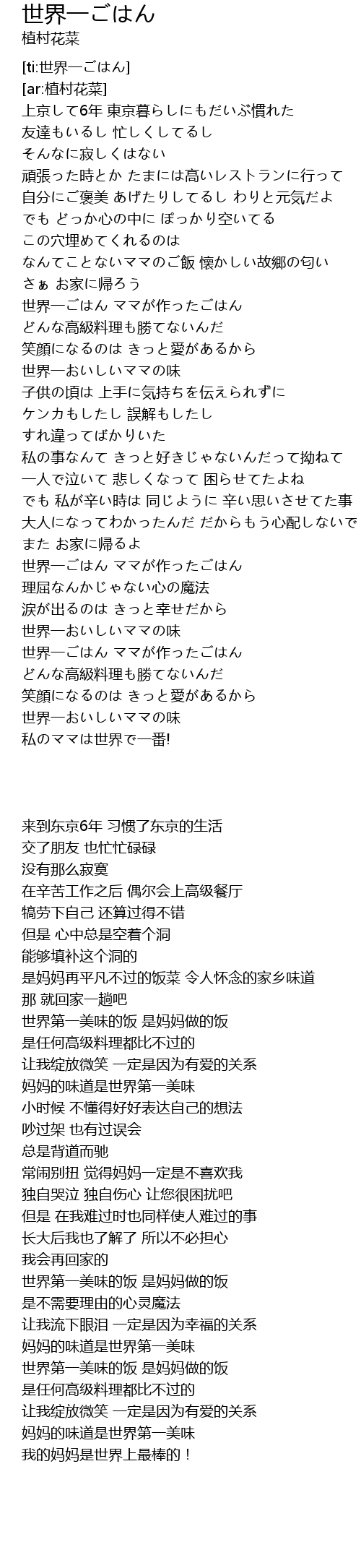 | [01:26.39] | 世界一ごはん ママが作ったごはん |