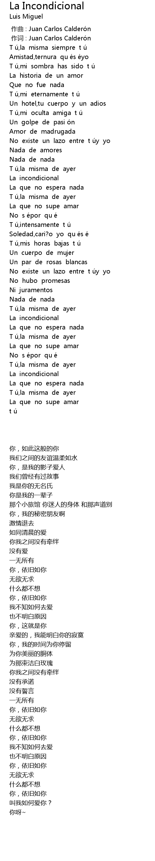 | [00:00.00] | zuò qǔ : Juan Carlos Calderó n |