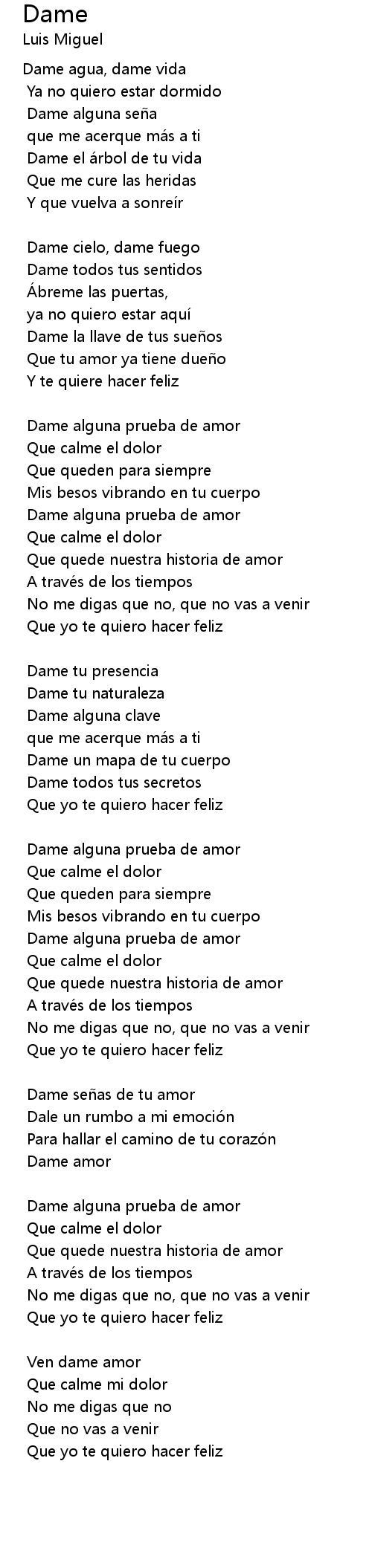 | Dame alguna prueba de amor | |