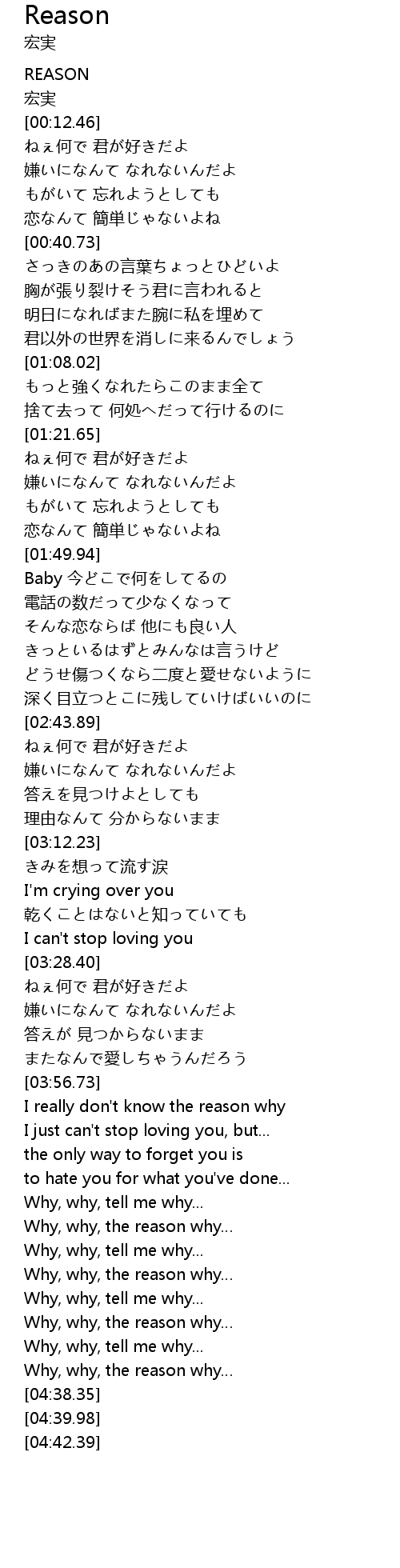 | [00:13.61] | ねぇ何で 君が好きだよ |