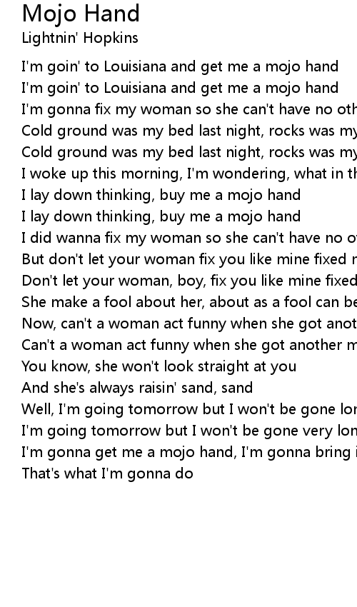 I'm gonna get me a mojo hand, I'm gonna bring it back home |