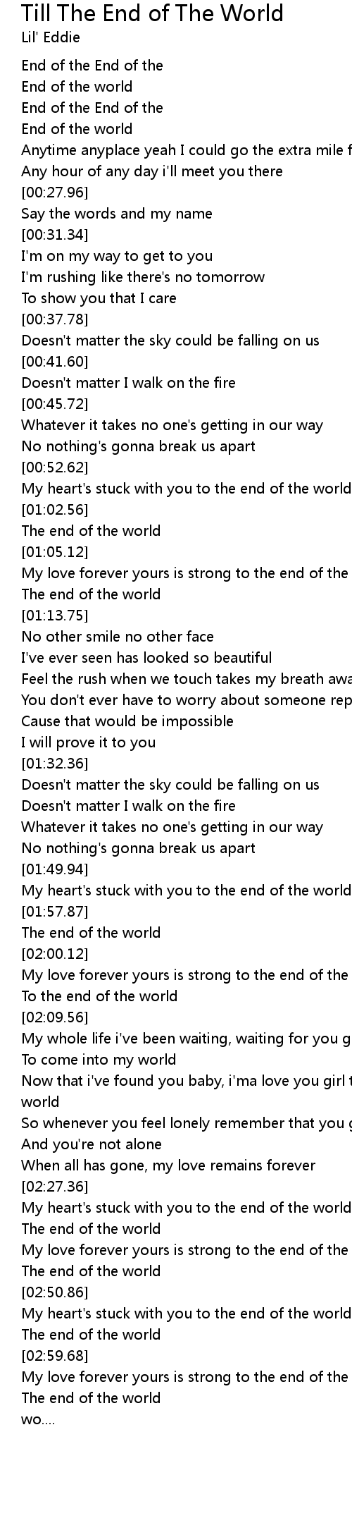 My heart's stuck with you to the end of the world |
