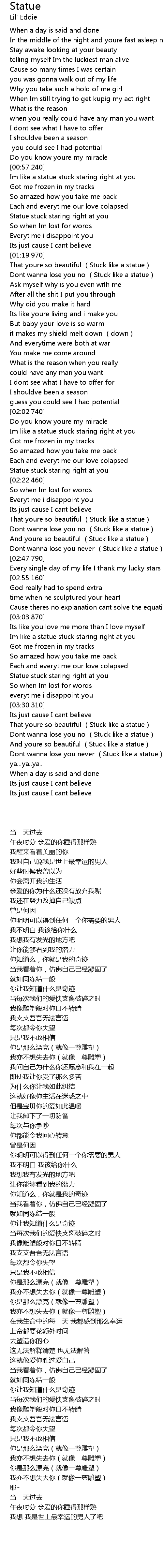 | [02:33.240] | Dont wanna lose you no Stuck like a statue |
