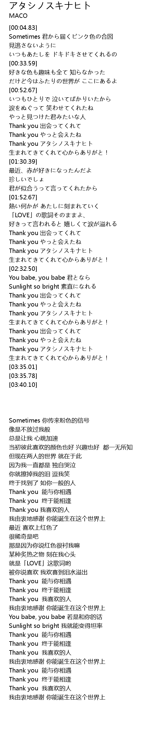 | [03:24.75] | Thank you アタシノスキナヒト |