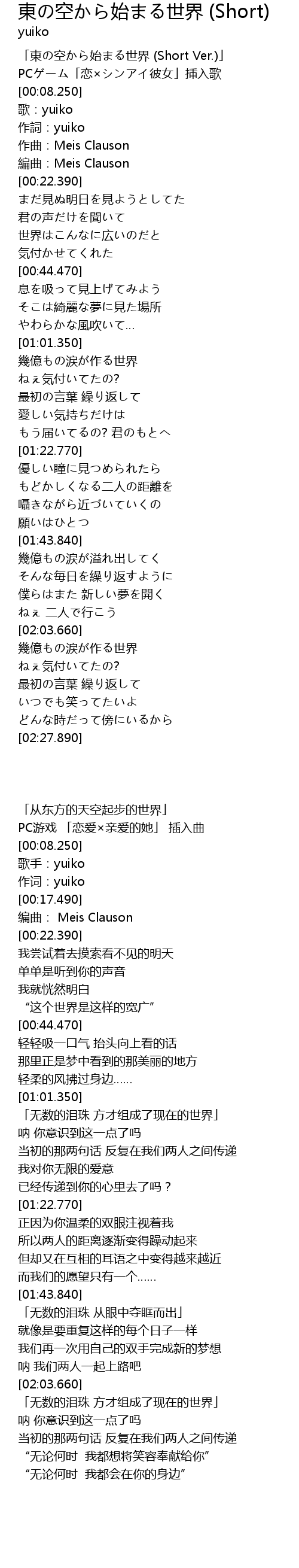 | [00:00.610] | 「東の空から始まる世界 (Short Ver.)」 |