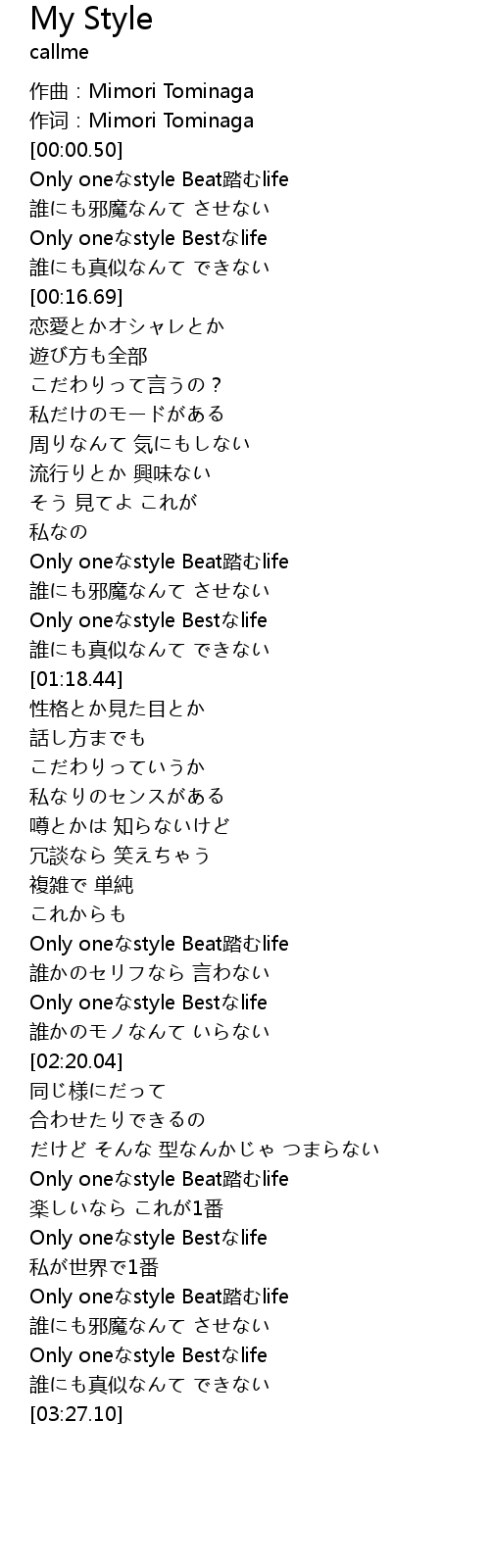 | [02:58.03] | Only oneなstyle Bestなlife |