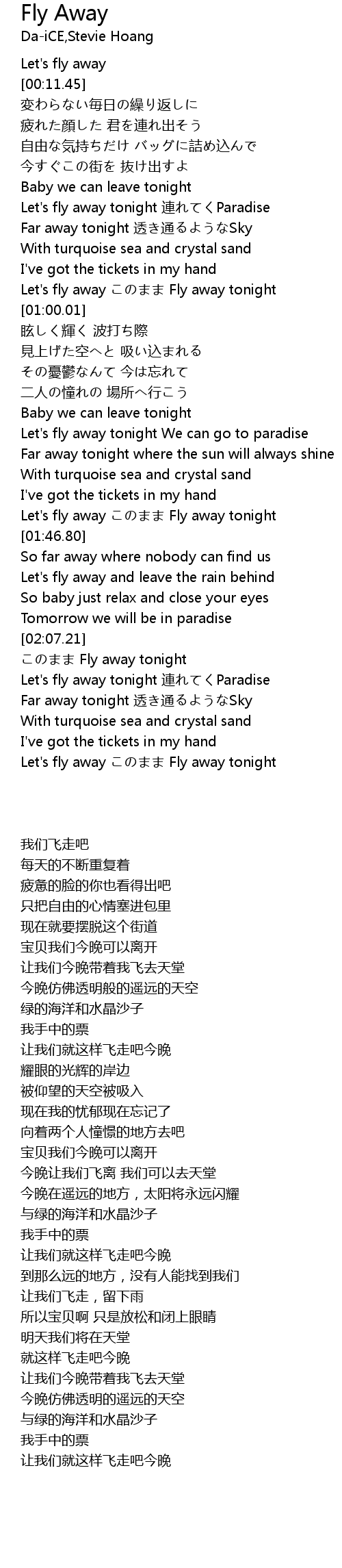| [00:52.85] | Let' s fly away Fly away tonight |