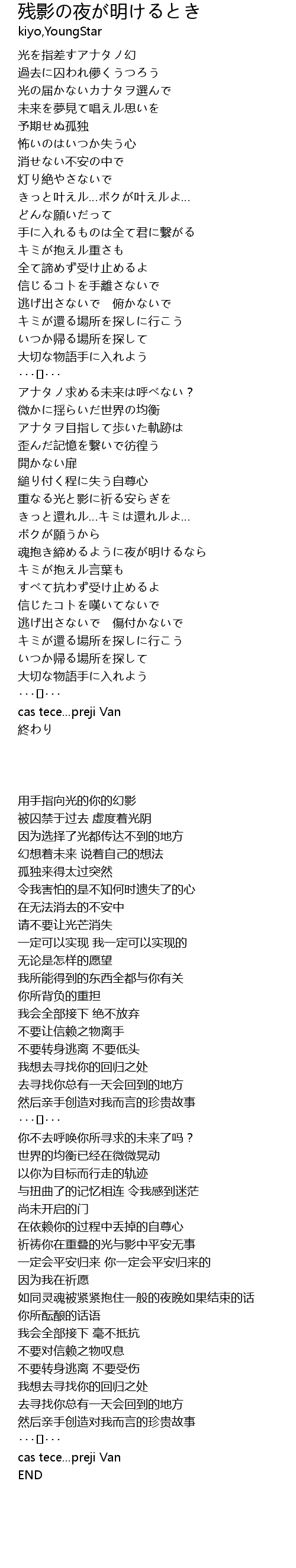 | [00:24.07] | 光を指差すアナタノ幻 |