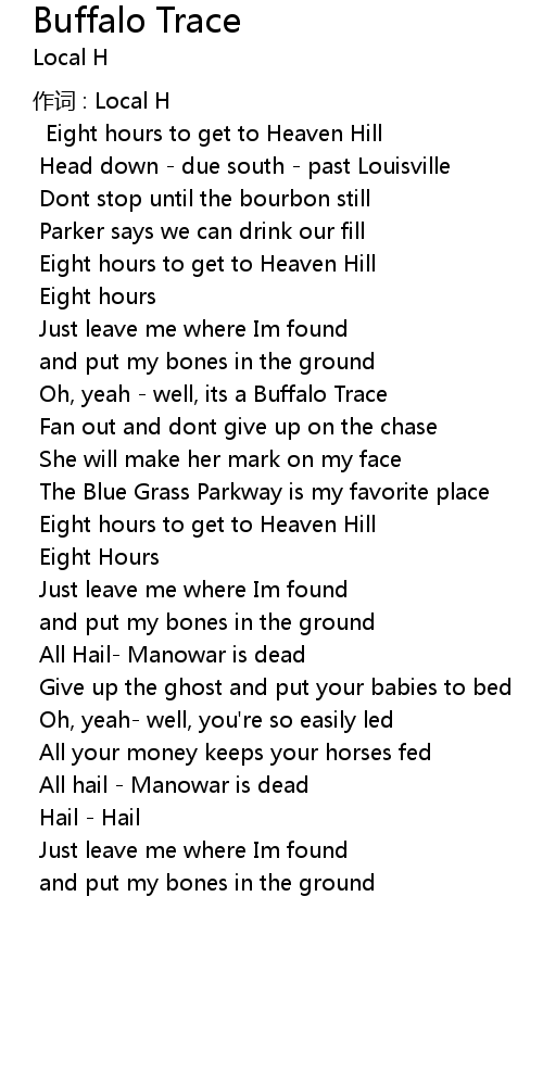 | Song | Buffalo Trace |