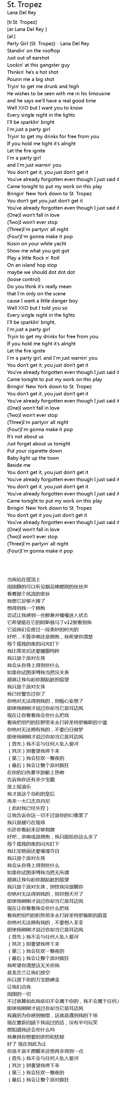 Party Girl (St. Tropez) - Lana Del Rey |