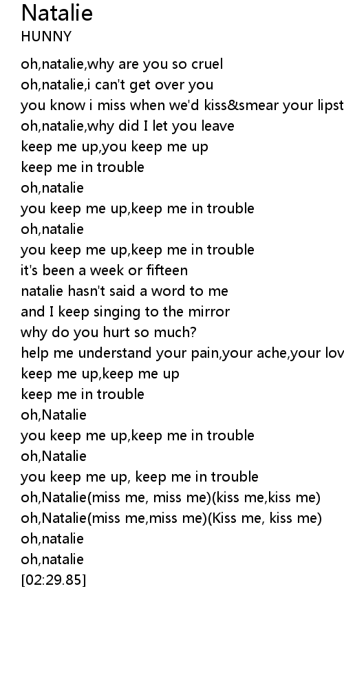 [01:51.51] oh,Natalie(miss me, miss me)(kiss me,kiss me)