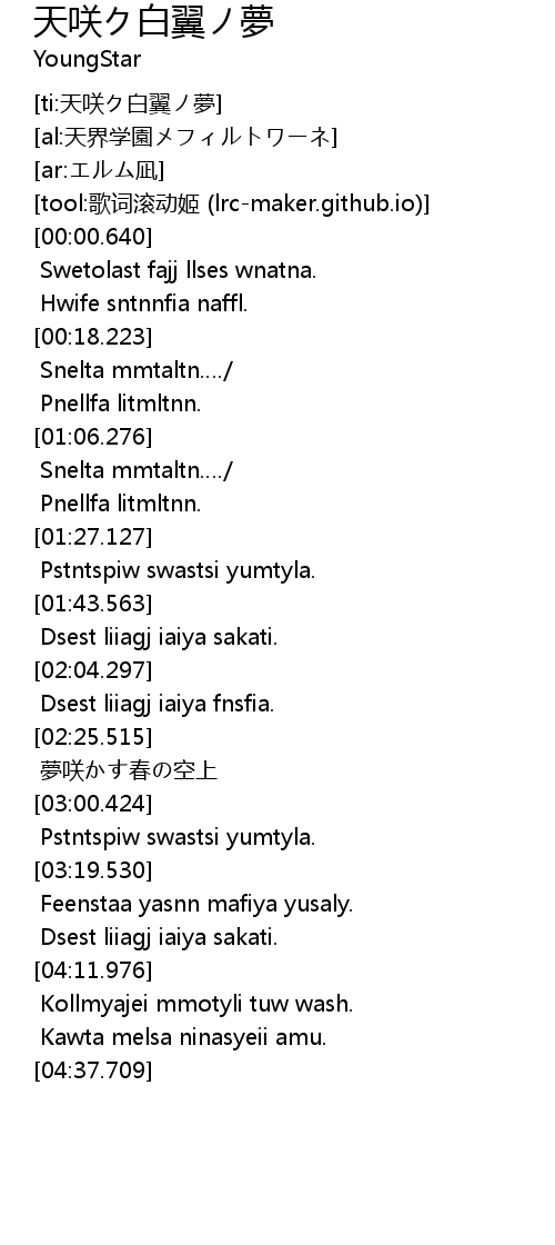 | [02:04.547] | Dsest liiagj iaiya fnsfia. |