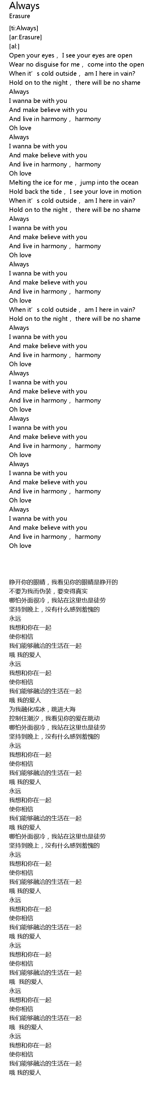 | [00:20.70] | Open your eyes, I see your eyes are open |
