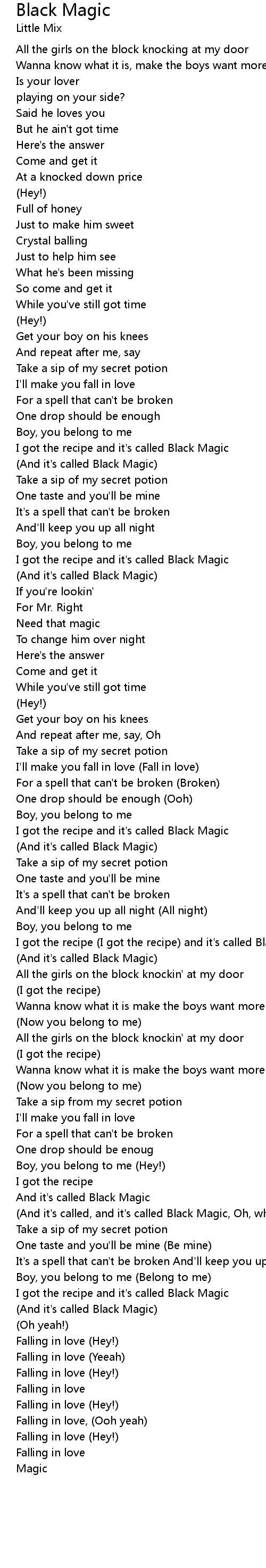 (And it's called, and it's called Black Magic, Oh, whoa)