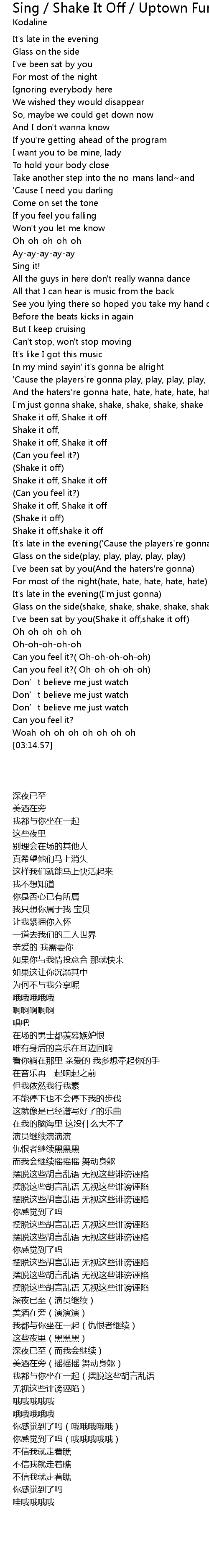 | [01:58.75] | Shake it off, Shake it off |