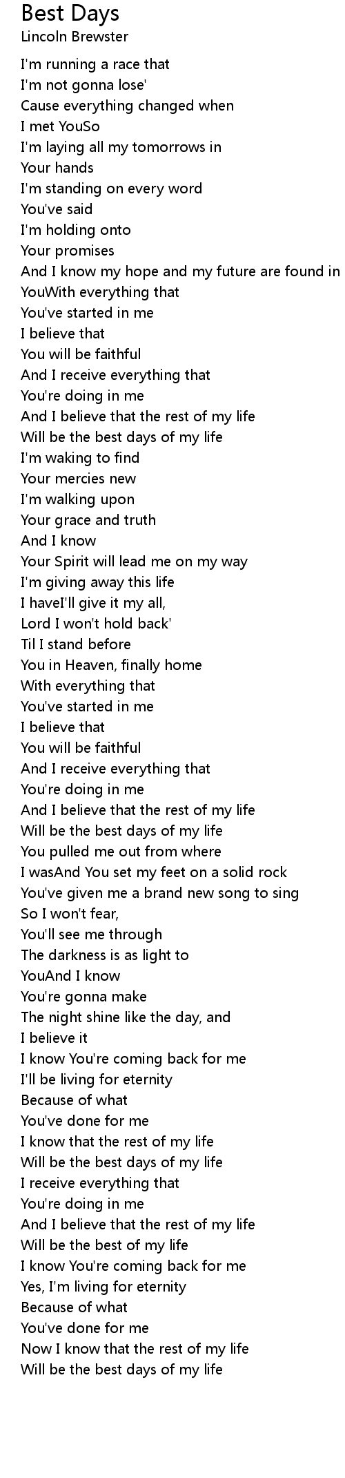 Will be the best days of my life |