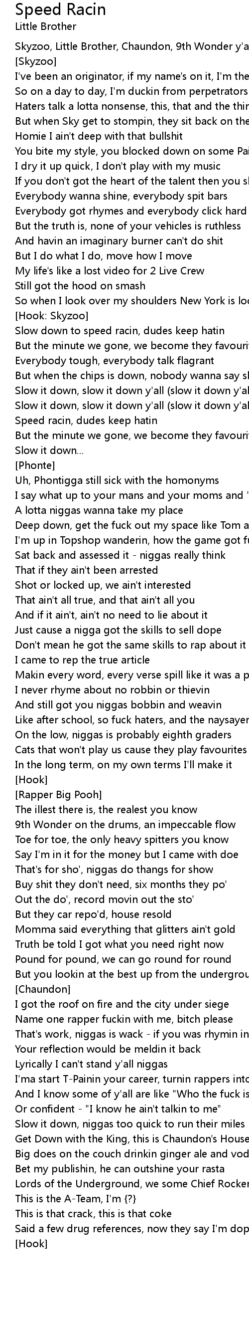 Slow down to speed racin, dudes keep hatin |