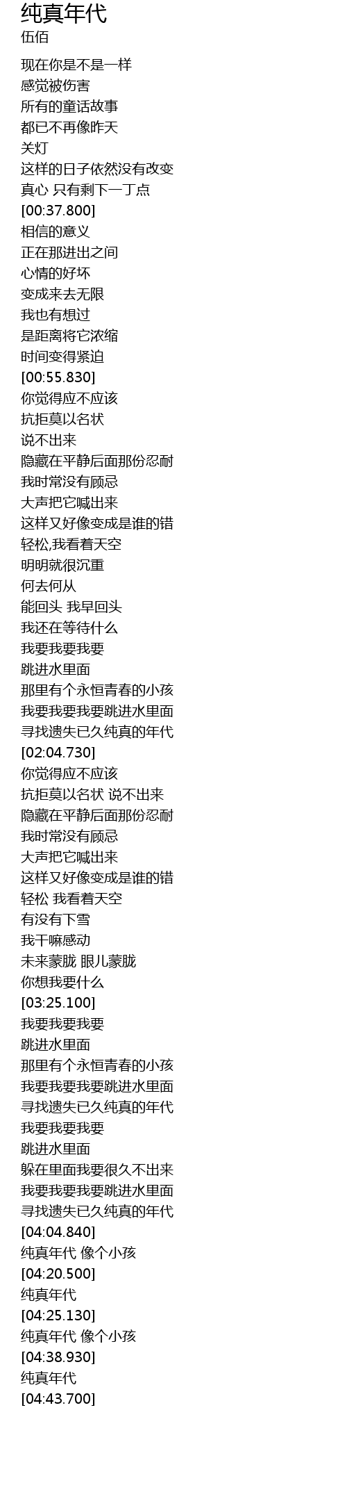 | [04:32.720] | 纯真年代 像个小孩 |