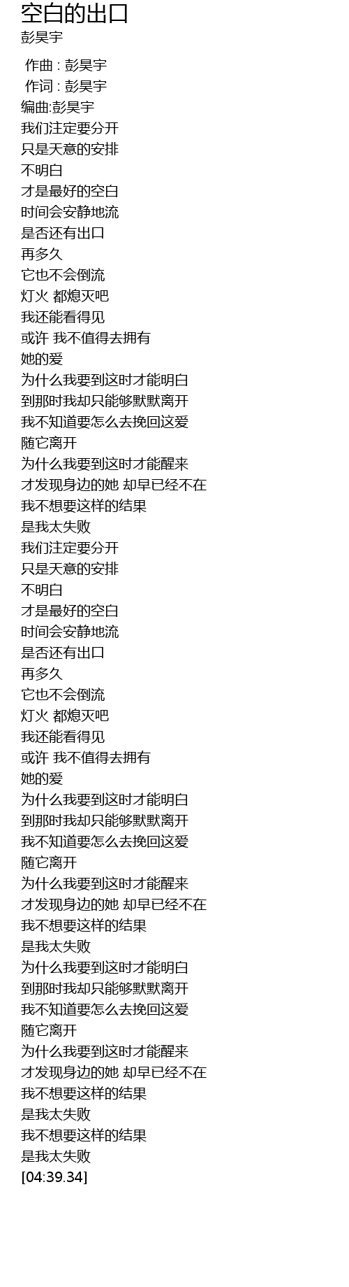 | [00:00.00] | 作曲 : 彭昊宇 |