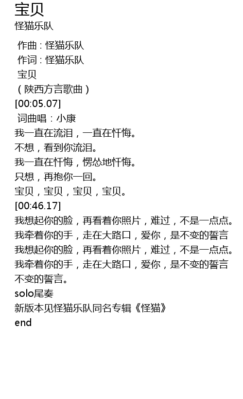 | [00:00.334] | 作词 : 怪猫乐队 |