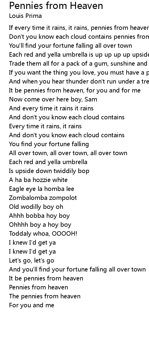 Don't you know each cloud contains pennies from heaven (Shubby Dobby)