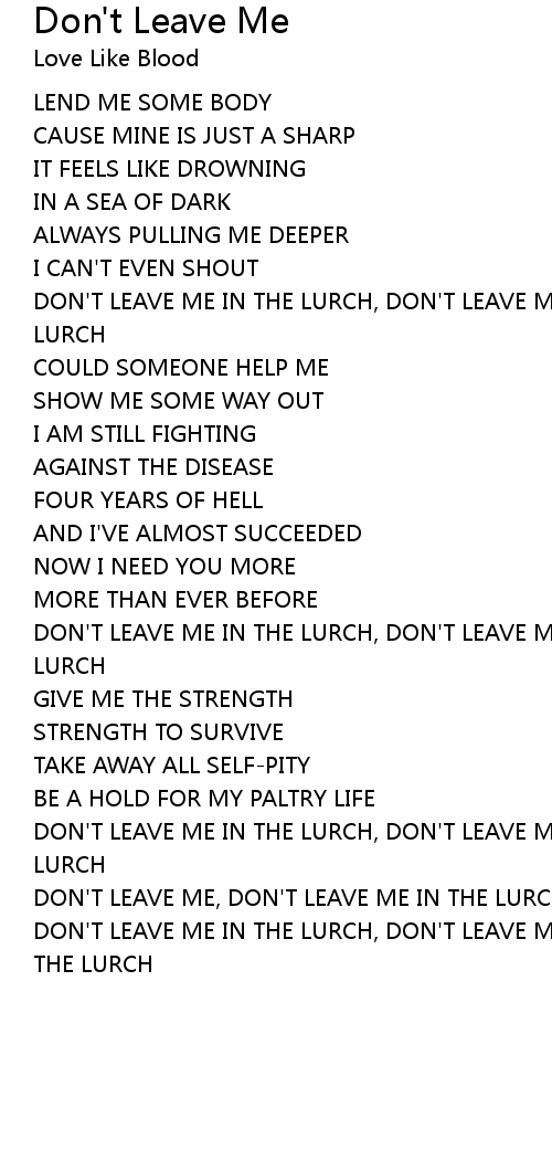 DON'T LEAVE ME IN THE LURCH, DON'T LEAVE ME, DON'T LEAVE ME, DON'T LEAVE ME IN THE LURCH |