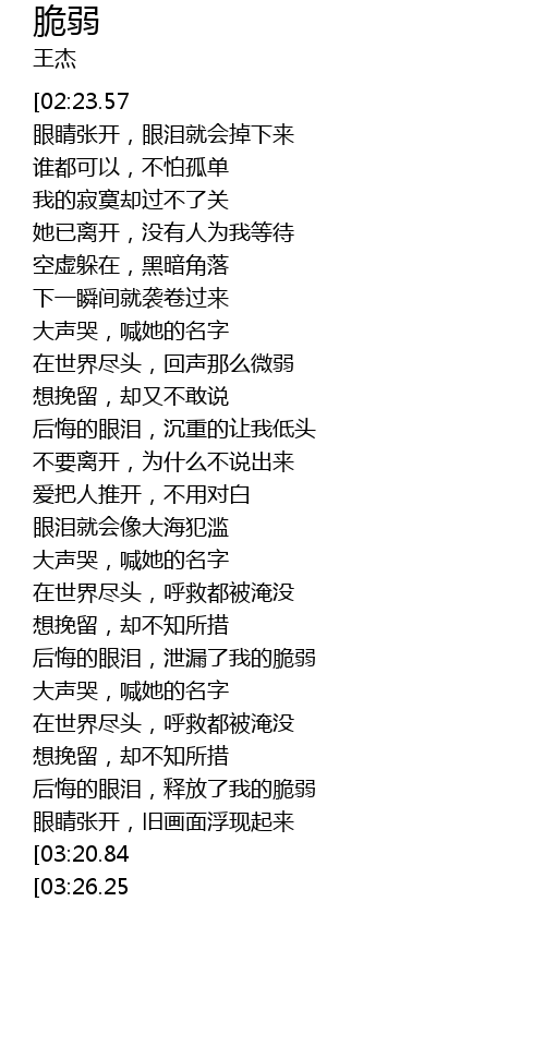 | [03:00.53] | 后悔的眼泪,释放了我的脆弱 |