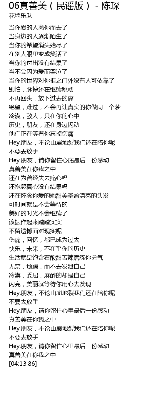 | [03:58.32] | Hey,朋友,请你留住心里最后一份感动 |