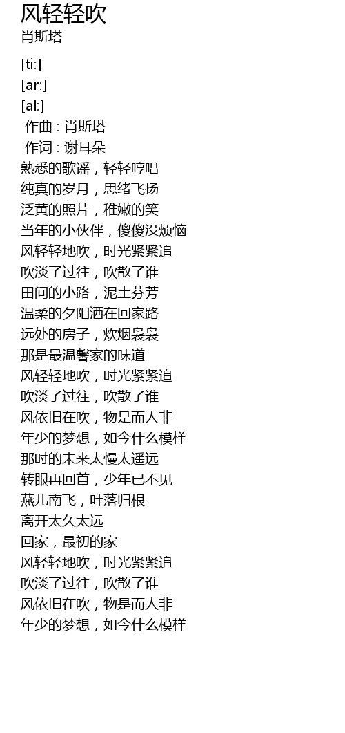 | [02:38.70] | 风轻轻地吹,时光紧紧追 |