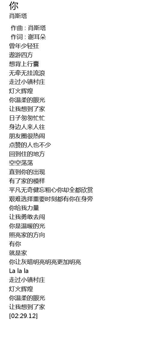 | [01:37.29] | 你是温暖的光 |