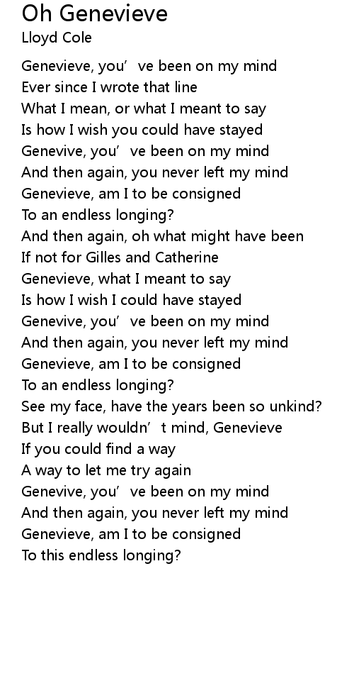 | Genevieve, you’ve been on my mind | |