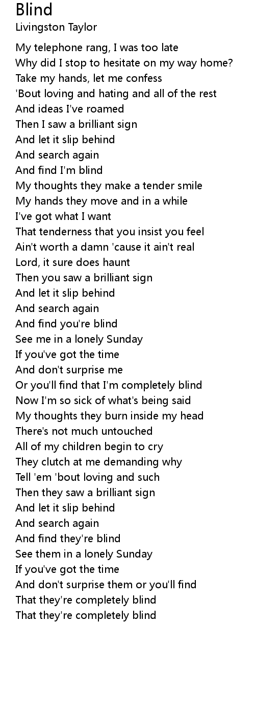 And find I'm blind |