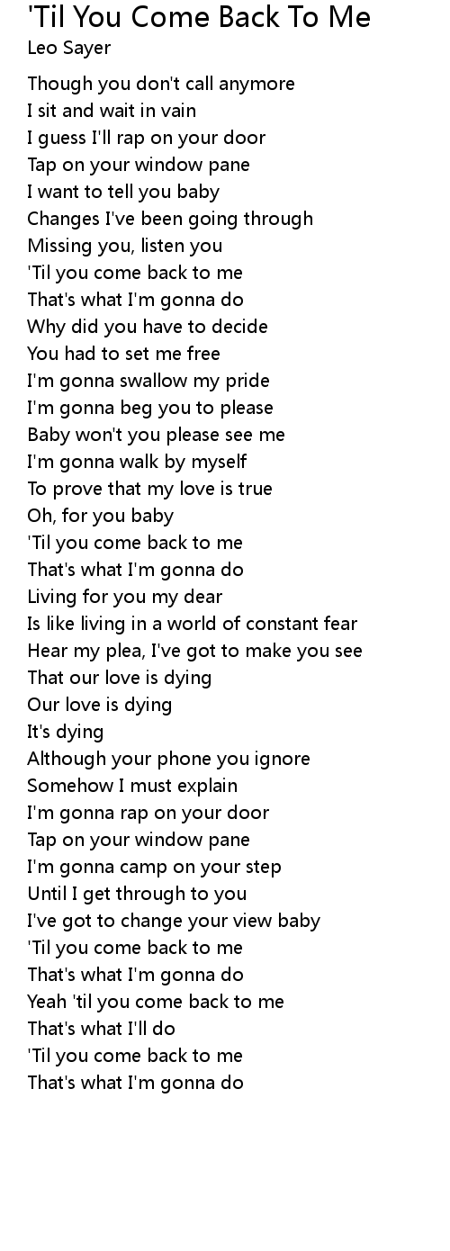 Yeah 'til you come back to me |
