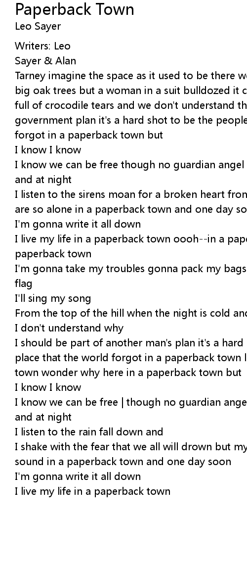I should be part of another man's plan it's a hard shot for the people in the place that the world forgot in a paperback town live and die here in a paperback town wonder why here in a paperback town but |