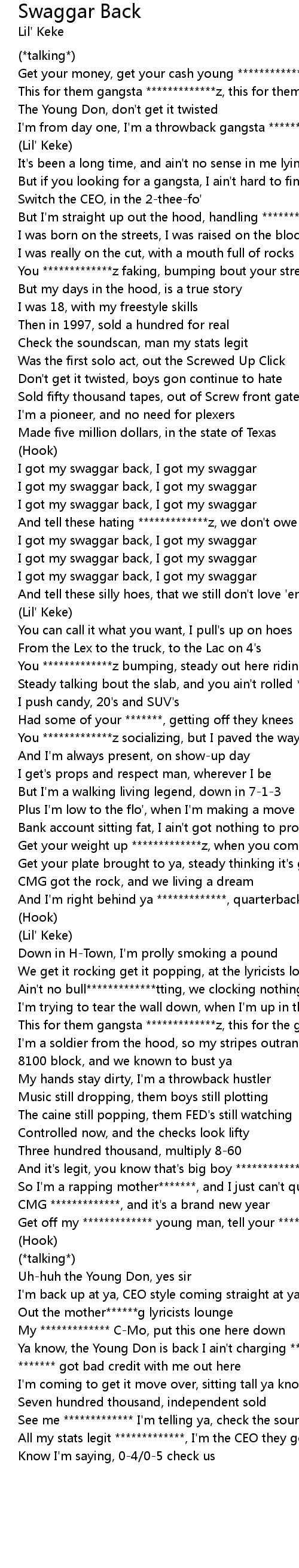 I'm from day one, I'm a throwback gangsta ************* ha-ha |