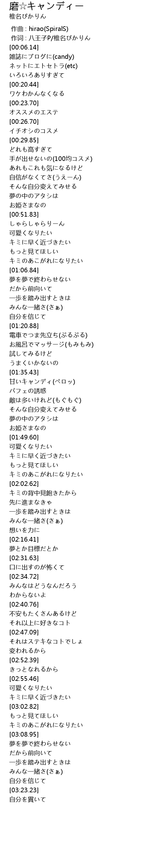 | [01:36.38] | 甘いキャンディ(ペロッ) |