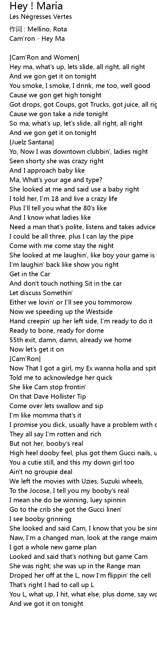 | Hey ma, what' s up, lets slide, all right, all right | |