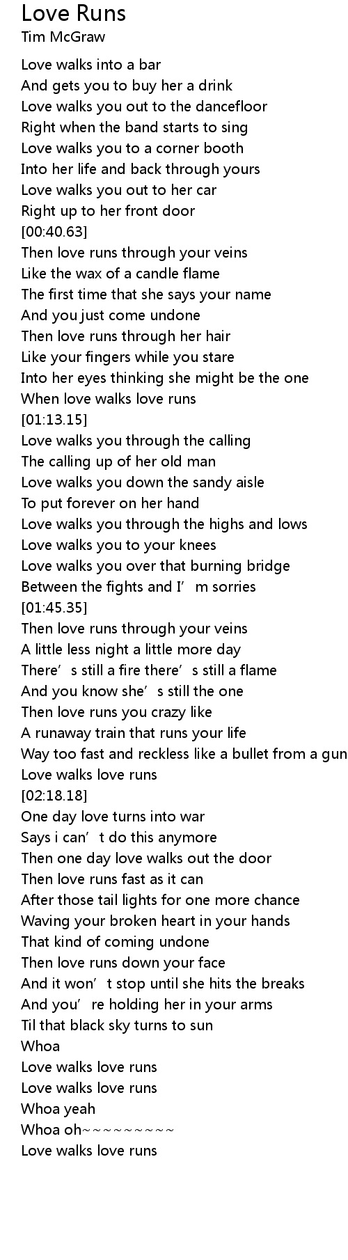 | [01:10.56] | When love walks love runs |