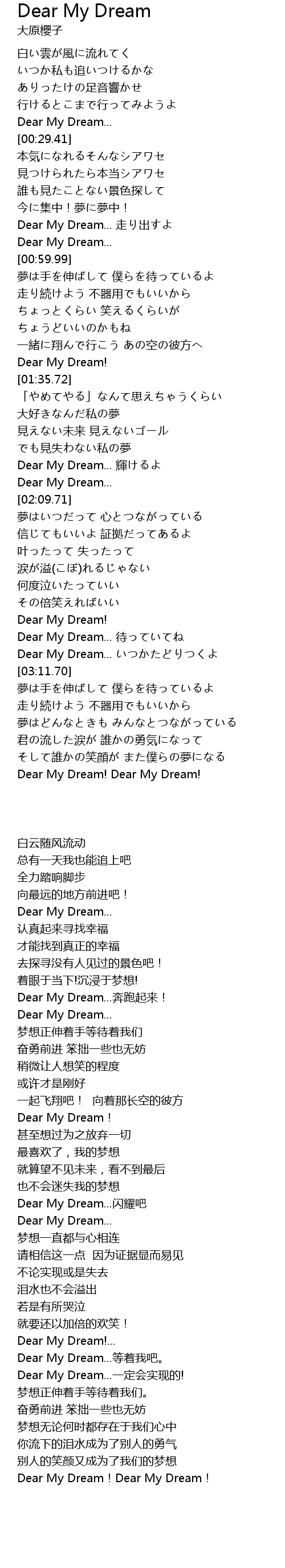 | [03:49.80] | Dear My Dream! Dear My Dream! |